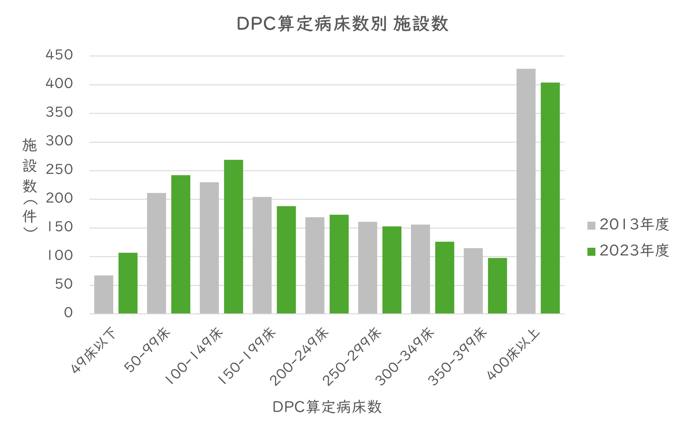 つまり、急性期医療のニーズ減少や地域包括ケア病棟の整備などにより急性期機能をコンパクトにしつつ、2023年度時点ではDPC参加病院数が減っていないことから、何とか急性期機能を維持している様子が見て取れる。