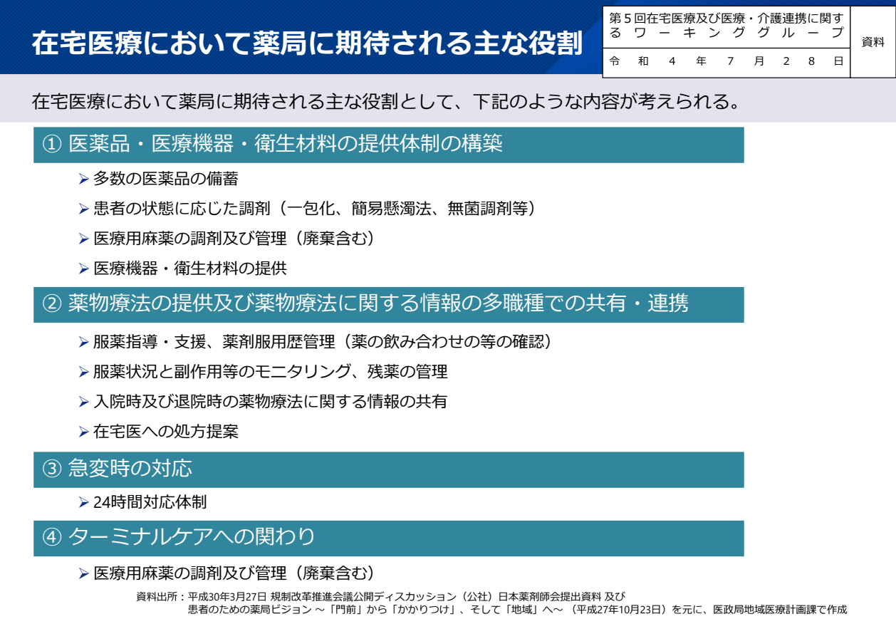 中医協で議論されているように経営面の課題は残るものの、地域医療へ貢献するうえで在宅医療への関与は薬局・薬剤師にとって不可欠な業務であることは疑いようがない。