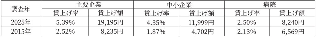 表:春季労使交渉の結果(企業と病院)
