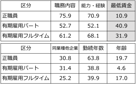 厚生労働省 「令和3年パートタイム・有期雇用労働者総合実態調査」 によれば、パートタイム・有期雇用職員の定期昇給を行っている割合は正職員に比べて低く、基本給決定において最低賃金を重視する割合が高いことが分かります(図表1、2)。このことから、パートタイム職員等では、定期昇給制度が整備されておらず、相談を受けた病院のように、最低賃金の上昇に合わせて昇給しているケースも多いものと推察します。